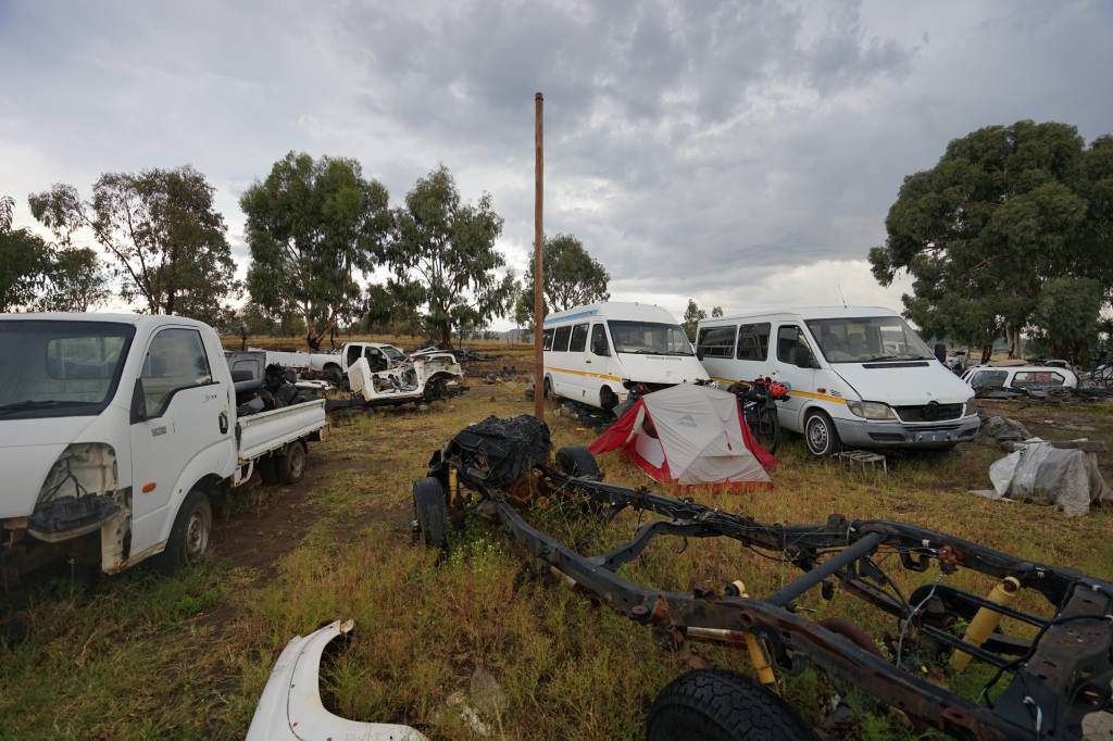 We rode back into South Africa towards Eswatini, across parched land where corn fields lie dead due to the continuing drought. At a bike shop in Bethlehem, the owner, Karel, took us home for a night after servicing our bikes. We avoided big cities and stuck to small towns, which meant struggling to find much to eat beyond meat pies, samosas, and canned goods.