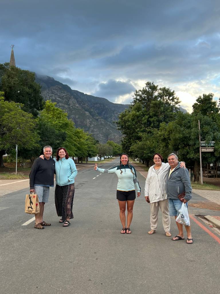 From Cape Town to Port Elizabeth (Gqeberha), we experienced extreme heat (40°C), close calls with baboons, lots of climbing and lazy beach towns. We saw springbok, monkeys, warthogs, but mainly cattle and sheep. We camped in farmer’s yards, booked guesthouses, and stayed with some Warmshowers’ hosts. It took four days of cycling before we reached towns not covered in electrified wire (think prisons or fencing for animals) around every house, apartment building and storefront. At a cafe in Greyton, we were invited to stay at Richard and Karin’s house and stayed for four days. All land in South Africa is fenced, so we had to ride up long driveways to get permission to camp (not much stealth camping to be found). But farmers and South Africans were crazy nice and over half the time we were drug into the house, given beds, showers and meals. South African hospitality is next level.